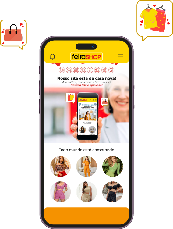 A Feira Shop está dando mais um passo para impulsionar suas vendas e ampliar sua presença no mercado. Estamos desenvolvendo um novo site que será uma grande vitrine virtual, conectando sua loja a milhares de clientes. Hoje, contamos com mais de 336 mil seguidores no Instagram e mais de 1,5 milhão de visitantes em nossas redes ao mês, e agora queremos que você também aproveite todo esse alcance.